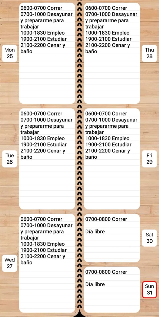 Hola espero estén muy bien, para esta actividad me solicitaban hacer una organización semanal utilizando PowerPoint o Word, decidí bajar una app y edtoy bastante contento con el resultado, si bien es muy rutinaria mi semana, fácilmente pude incorporar el estudio, en un futuro corto-mediano lo voy a modificar y agregar más horas de estudio el fin de semana puesto que las voy a necesitar. Les dejo una imagen del resultado. Saludos!